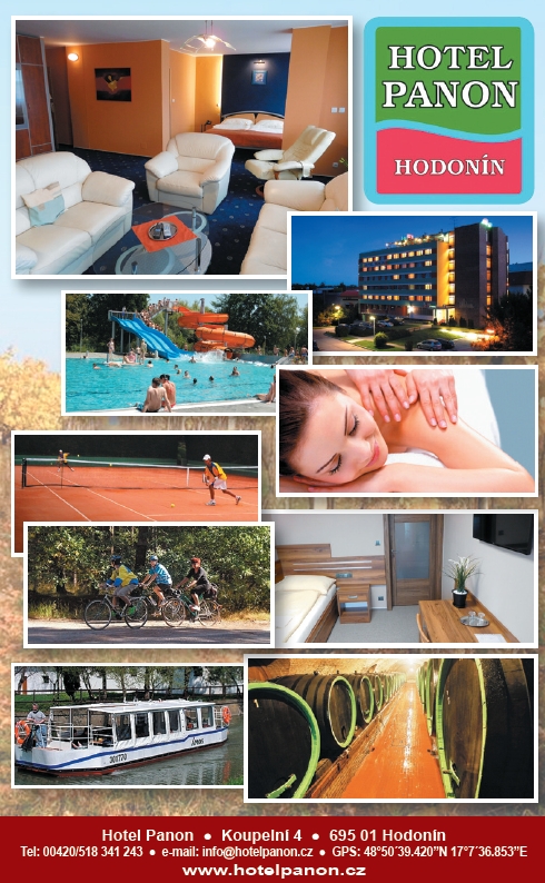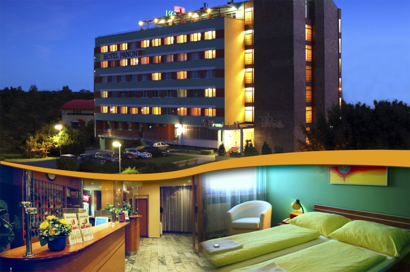 Kapacita 89 pokojů, část v anti-alergické úpravě, bezplatné wifi a 4 luxusní apartmány, 1 má saunu. K dispozici je klimatizovaná restaurace, konferenční sál a venkovní terasa. Ideální pro cestování, rekreaci a rodinou dovolenou či poznávací zájezdy. Blízký sportovní areál s moderním koupalištěm a krytým bazénem s fitness a masážemi, squash, tenis a fotbalové hřiště. Kongresová turistika, školení, team-building, wellness a vinné sklípky s degustací vína. Accommodation-Grand prix, BVV, Austerlitz. Hotel je zařazen do kategorie H*** a poskytuje ubytování v jednolůžkových, dvoulůžkových, třílůžkových pokojích a suitách s vířivou vanou, jedna má vlastní saunu. Bezdrátový příjem internetu Wi-Fi systémem. Hostům je k dispozici klimatizovaná restaurace, snack-bar, klimatizovaný zasedací sál pro pracovní zasedání, semináře nebo slavnostní akce. V blízkosti hotelu je pro zimní měsíce krytý plavecký bazén, squash, spinning. V letním období slouží moderně zrekonstruované koupaliště se třemi bazény s vyhřívanou vodou a vodními atrakcemi pro děti i dospělé. K dispozici je hřiště pro plážový volejbal, minigolf, tenisové kurty a fotbalové hřiště s travnatým povrchem. Ideální prostředí pro nenáročnou pěší turistiku i cykloturistiku vinařským krajem. Hotel Panon je vhodný pro krátkodobé i dlouhodobé pobyty se sportovně-společenským vyžitím, včetně skupinových zájezdů – s možností návštěvy vinných sklepů v okolí Hodonína.