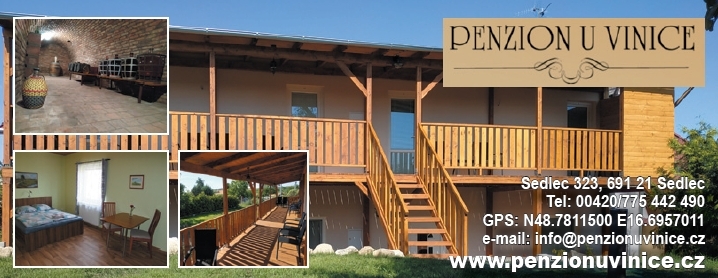 Penzion s vinným sklepem a domácím vínem se nachází na klidném místě vinařské obce Sedlec na křižovatce cyklotras Lednice-Mikulov-Valtice-Pálava.