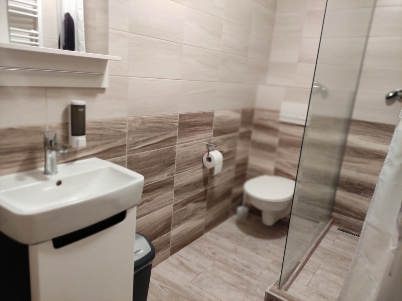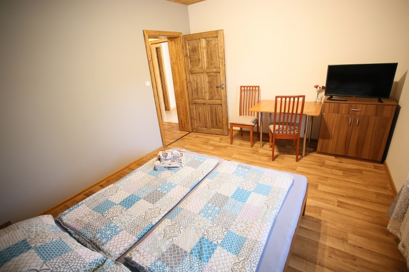 Pokoje: 2-lůžkové s terasou, koupelnou, lednicí, TV, rychlovarnou konvicí a wi-fi zdarma.