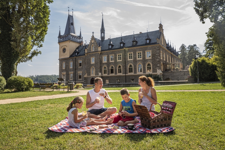 Městu dominuje zrekonstruovaný pseudogotický zámek. Navštívíte zde dobové interiéry „Krále železnic“ Jana Schebka. Děti potěšíte návštěvou zábavné stezky rytíře Miloty Kolowrata, kde si v zámeckém příkopu vyzkouší, střílení z luku, šplh nebo lovryb. Zábavně naučnou stezkou parkem dojdete ke Kolowratské věži. Každé patro věže je interaktivní a z výšky 20 metrů je krásny výhled na zámecký areál a také na Vodácké muzeum. Navštívit můžete i expozici Příběh řeky Sázavy s mnoha herními prvky a videoprojekcí. Můžete je také vzít na dětské hřiště, na kterém je kromě prolézaček, houpaček a pískoviště také kuličková dráha a dopravní hřiště.